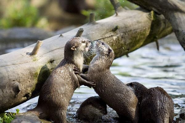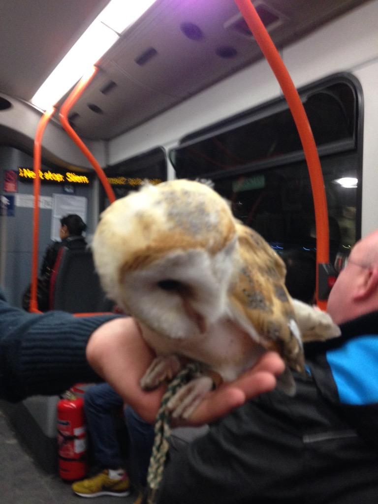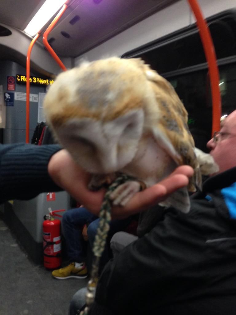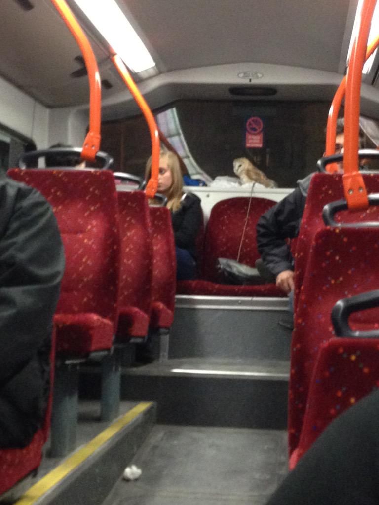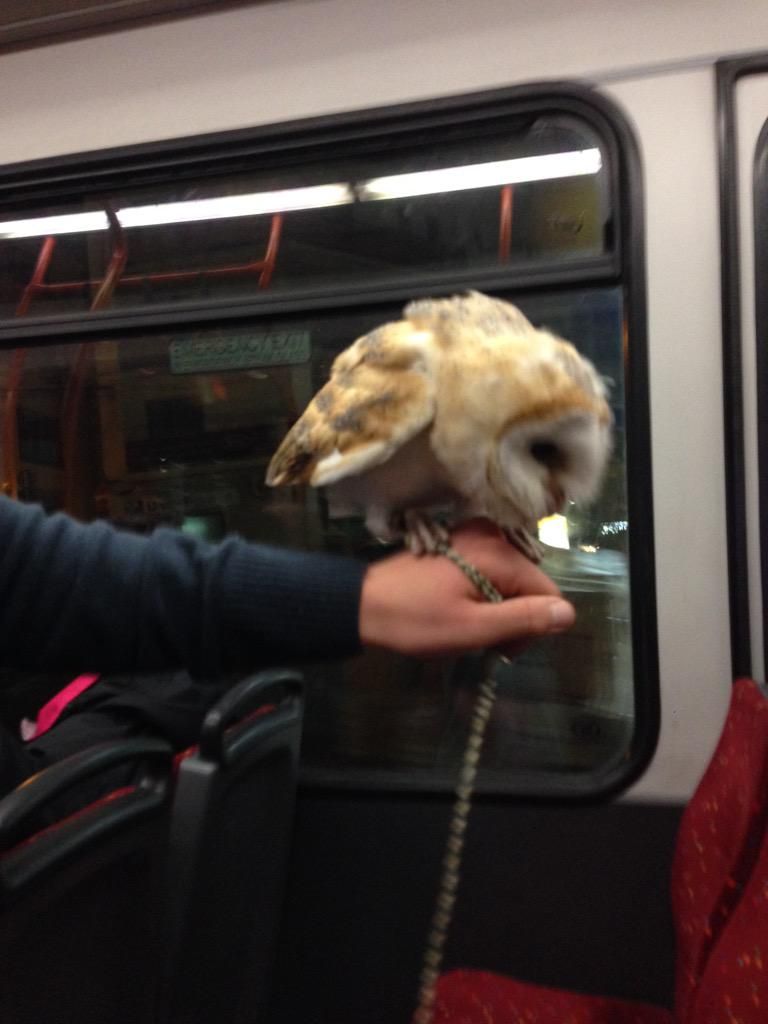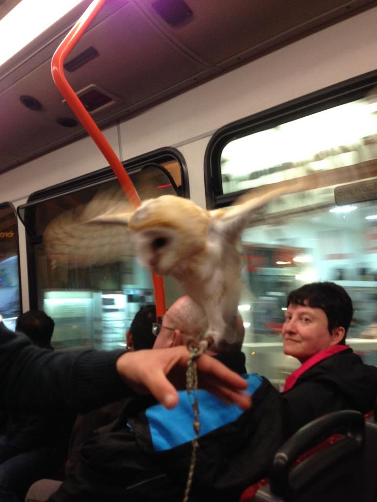 Scary people on the train again. These have a wild animal. It looks like a bear with a fluffy tail.